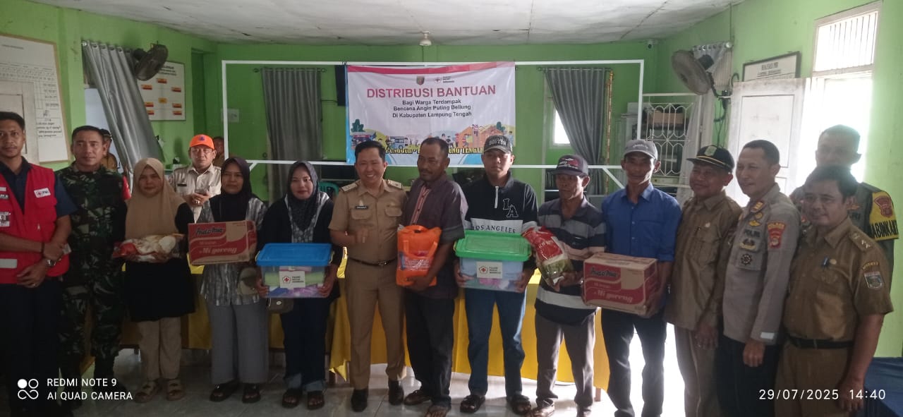 Lampung Tengah — Dalam rangka meringankan beban masyarakat pasca di terjang angin puting beliung sebanyak 69 rumah warga Kampung Sri Sawahan Kecamatan Punggur Kabupaten Lampung Tengah mendapatkan bantuan dari pemerintah setempat. Selasa, 29/07/2025 siang.