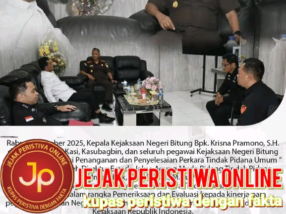 Jejakperistiwa.Online, Bitung — Kepala Kejaksaan Negeri Bitung, Bapak Krisna Pramono, S.H., bersama para Kepala Seksi (Kasi), Kepala Sub Bagian Pembinaan (Kasubagbin), serta seluruh pegawai Kejaksaan Negeri Bitung, menerima kunjungan Tim Supervisi Penanganan dan Penyelesaian Perkara Tindak Pidana Umum dari Kejaksaan Agung Republik Indonesia, pada Rabu (8/10/2025).