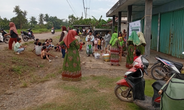Pembagian dilakukan secara langsung oleh para pengurus dan anggota Muslimat NU dengan penuh semangat kebersamaan.