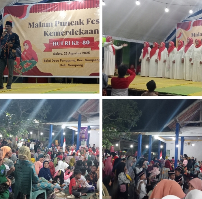 SAMPANG,jejakperistiwa.online-Pemerintah Desa Panggung dan Pemuda Lanceng Berkah Menggelar Malam Puncak Festival Kemerdekaan HUT RI ke-80 berlangsung meriah dengan diadakannya panggung hiburan di Balai Dusun Panggung Des Panggung Kecamatan Sampang Kabupaten Sampang.Sabtu Malam,(23/08).