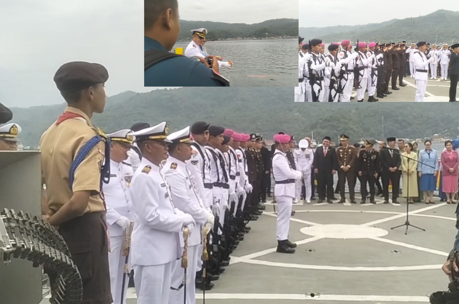 Sementara itu, di Satrol Kodaeral VIII Bitung, yang beralamat di Kelurahan Winenet Dua, Kecamatan Aertambaga, upacara dipimpin oleh Wali Kota Bitung, Hengky Honandar, S.E., dengan Letkol Laut (S) Joko Maryono, S.E. bertugas sebagai Komandan Upacara. Prosesi diakhiri dengan tabur bunga di laut menggunakan KRI KAKAP 811 TNI AL, sebagai penghormatan bagi para pahlawan laut Indonesia.