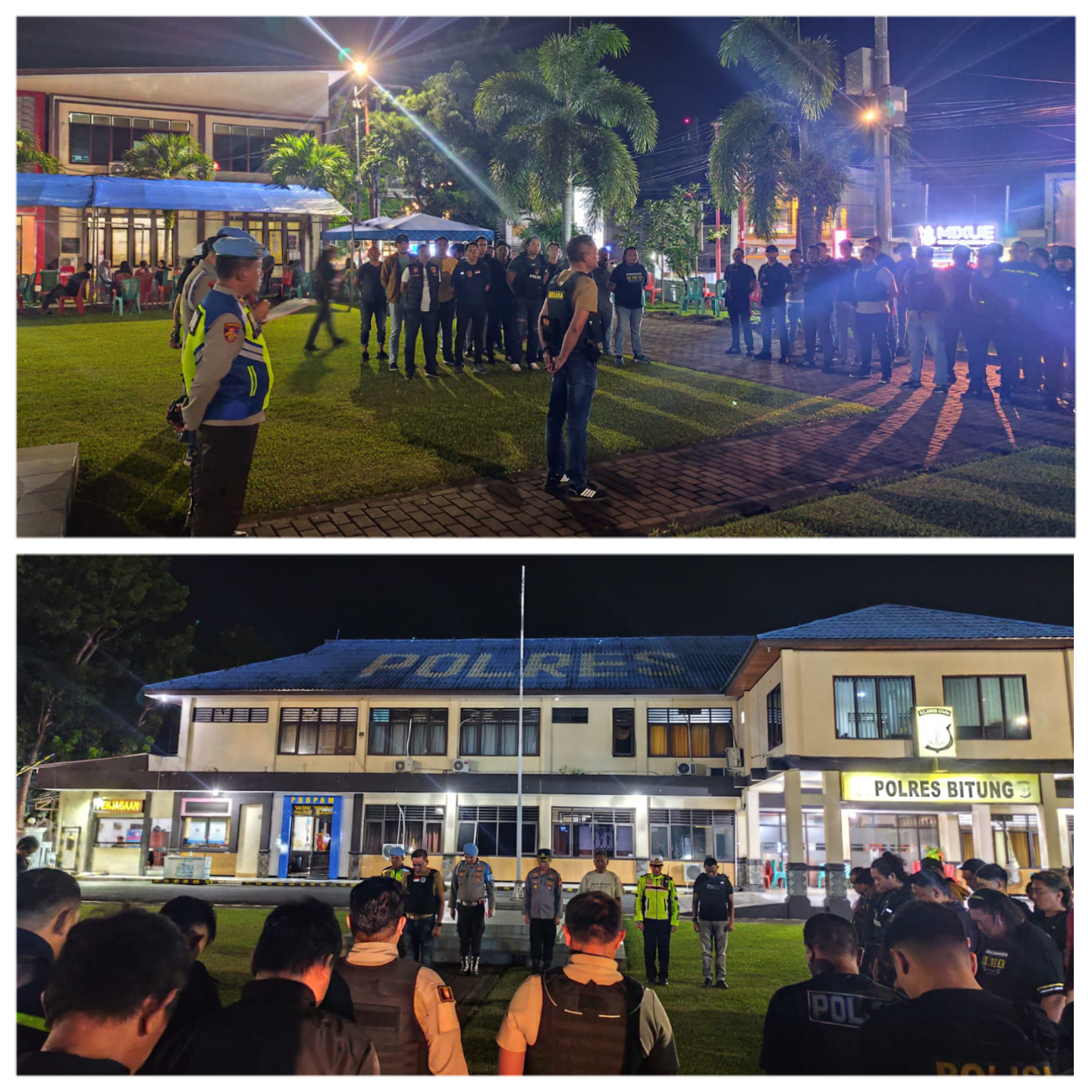 Apel yang dipimpin Wakapolres Bitung, KOMPOL J.H. Daniel Korompis, S.E., digelar di Lapangan Apel Polres Bitung pada pukul 21.00 Wita, dengan melibatkan gabungan Tim Opsnal Polres Bitung.