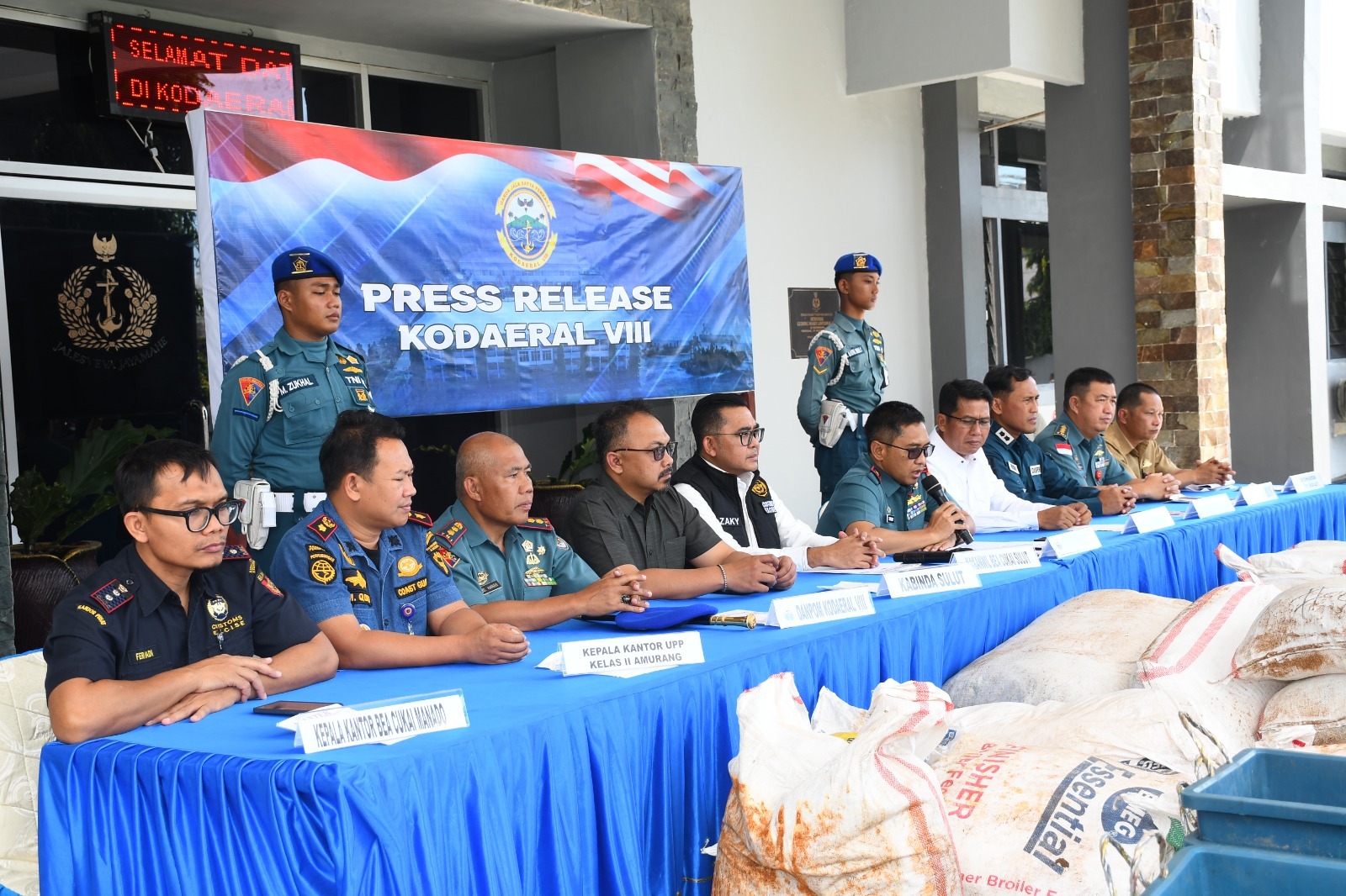 Konferensi pers tersebut turut dihadiri oleh Kepala Kantor Wilayah Bea Cukai Sulawesi Utara, perwakilan unsur intelijen daerah, Dinas Perhubungan Provinsi Sulawesi Utara, Kantor UPP Kelas II Amurang, serta pejabat utama Kodaeral VIII.