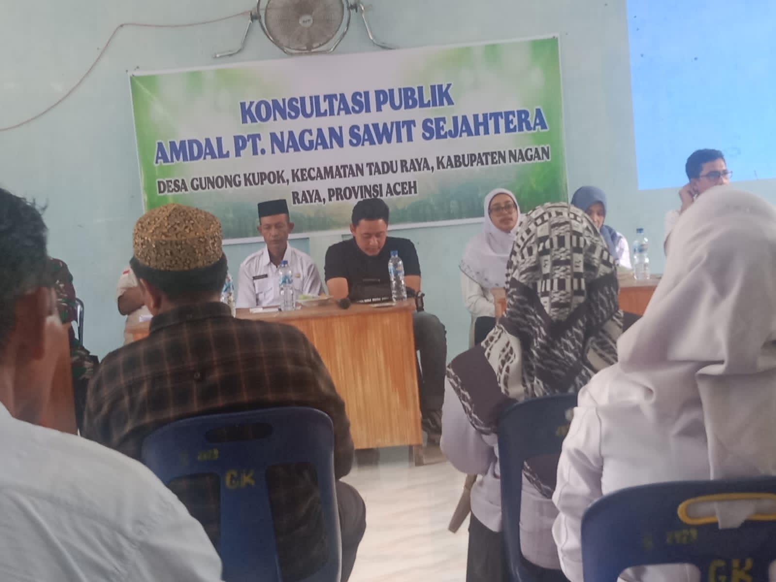 Acara tersebut dihadiri oleh pengawas linkungan Hidup provinsi Aceh dan pengawas lingkungan hidup Kabupaten Nagan Raya (DLH) Perwakilan dari Direktur PT. Nagan Sawit Sejahtera, Danpos Ramil, Kapolsek, Keucik dan juga puluhan warga Desa Gunung Kupok yang ikut serta dalam Konsultasi Publik Amdal yang untuk menyampaikan aspirasi mereka.