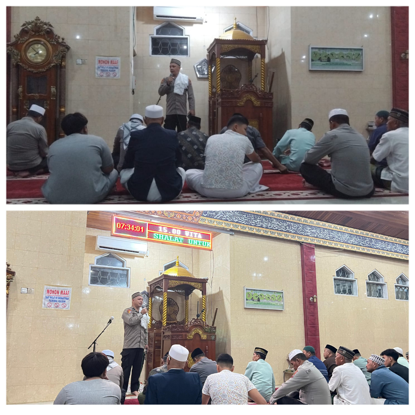 Tak hanya menyampaikan pesan spiritual, ia juga mengingatkan jamaah tentang pentingnya menjaga keamanan dan ketertiban di lingkungan masyarakat.