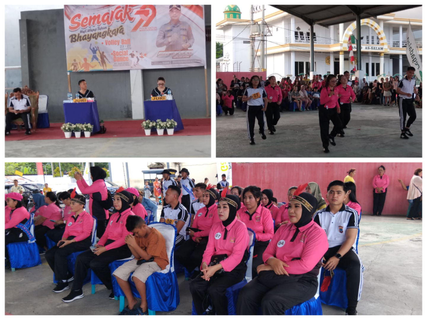 Jejakperistiwa.Online, Bitung – Dalam rangka memeriahkan peringatan Hari Bhayangkara Ke – 79 dan Hari Kesatuan Gerak Bhayangkari Ke – 73, Polres Bitung menggelar Pertandingan Social Dance yang berlangsung meriah di Lapangan Sport Hall Aspol Pinokalan, pada Senin (30/6/2025).