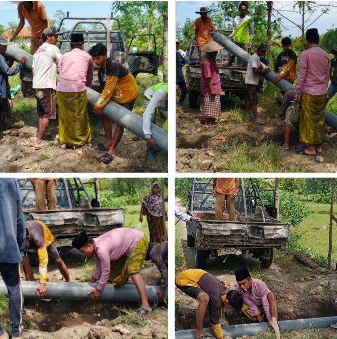 SAMPANG,jejakperistiwa.online-Sejumlah warga Dusun Cangge,Desa Pacanggaan,Kecamatan Pangarengan,Kabupaten Sampang,melakukan pekerjaan pembuatan saluran gorong-gorong dan pemutusan jalan Desa dengan alat seadanya secara swadaya,demi kelancaran aliran air hujan,agar tidak melewati bahu jalan Desa tersebut.Kamis,03/7/2025.